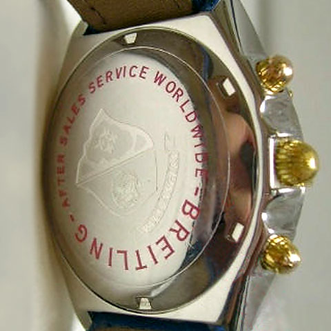 The PAN Frecce Tricolori (Three-colored Arrows) is an Italian aerobatic demonstration team; it is cited as having expressed the specifications leading to the design of the Chronomat. This watch is probably one of the first Chronomats to exhibit a special logo on its dial. As far as I know, its caseback is the same as the regular model of this era.